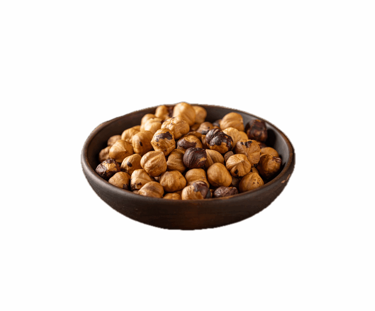 Alunele sunt culese manual la maturitate deplină, apoi coapte ușor, pentru a-și păstra aromele intense, textura crocantă și conținutul nutritiv valoros. Rezultatul este un produs premium, cu gust bogat, dulceag și prăjit fin, perfect pentru combinații cu ciocolată belgiană de calitate superioară.
