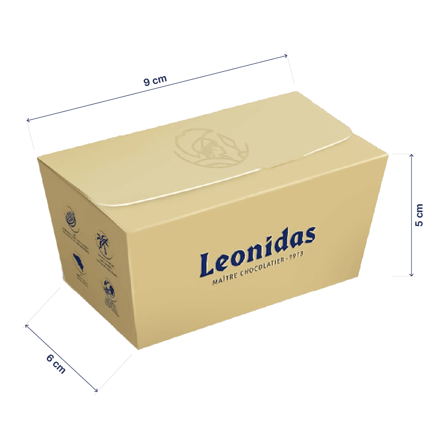 În interior, descoperi 9 praline premium atent selecționate, un mic tur de orizont al măiestriei belgiene: ciocolată neagră intensă, ciocolată cu lapte catifelată și ciocolată albă delicată. Umpluturile variază de la ganache fin și caramel sărat la praliné de alune ori gianduja, pentru un echilibru impecabil între texturi crocante și creme onctuoase. Rețetele Leonidas sunt făcute cu unt de cacao 100% pur și ingrediente selectate, pentru gust autentic și prospețime la fiecare mușcătură.