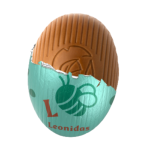 Mini Ou Cookies și cremă de lapte – Small Egg Cookies and Cream Milk este un mini ou Leonidas din ciocolată cu lapte, cu umplutură de ganache din ciocolată albă și fragmente crocante de biscuiți cu cacao. Un sortiment fin și echilibrat, potrivit pentru iubitorii combinației dintre cremă delicată și textură crocantă.