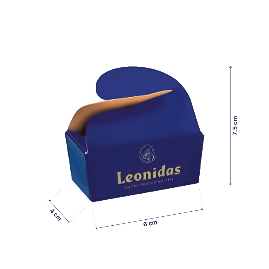 Miniballotin albastru Leonidas contine doua praline de ciocolata alba, neagra sau cu lapte. Fiecare dintre ele dezvaluind arome unice si delicioase. Printre acestea se numara crema de unt fina, combinatii fructate vibrante, caramel catifelat, ganache delicat, crema casei Leonidas si crema praline bogata. Fiecare pralina este realizata din ingrediente de cea mai buna calitate, cu 100% unt de cacao. Fara ulei de palmier, pentru a garanta un gust autentic belgian si o textura perfecta.