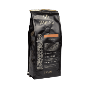 Cafea măcinată premium, stil Mocca, cu prăjire mediu-plus și corp intens, creată de artizanii Imping Kaffee (Germania), prăjitori tradiționali din 1875. Această cafea 100% Arabica are o consistență bogată, aciditate scăzută și un gust plin, catifelat, cu note de ciocolată. Fiecare ceașcă oferă o aromă persistentă și plăcută, ideală pentru cei care preferă o cafea echilibrată, rotundă, fără gust aspru sau ars.
