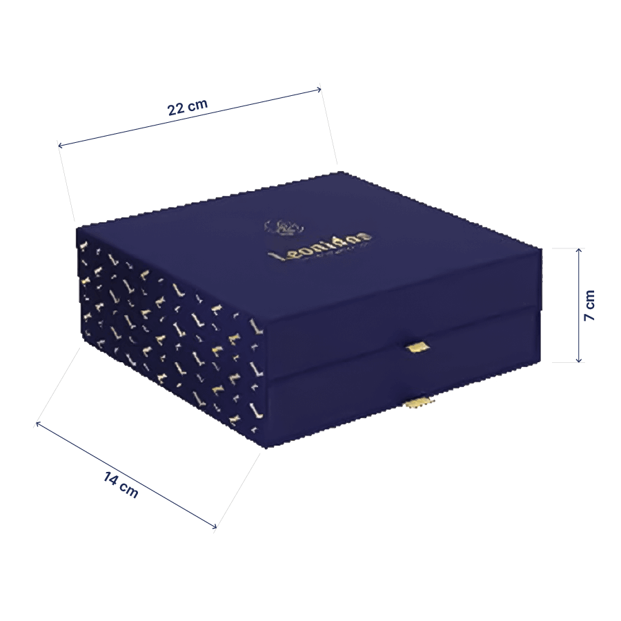 Praline Belgiene Luxury sunt simbolul rafinamentului si al gustului desavarsit, iar cutia Royal Blue reprezinta o expresie perfecta a elegantei. Aceasta cutie impresionanta, de un albastru intens, este conceputa cu doua sertare dispuse pe nivele. Fiecare nivel are locuri dedicate pentru pralinele Leonidas. Designul sofisticat si deschiderea spectaculoasa transforma Royal Blue intr-un cadou perfect pentru momentele speciale.