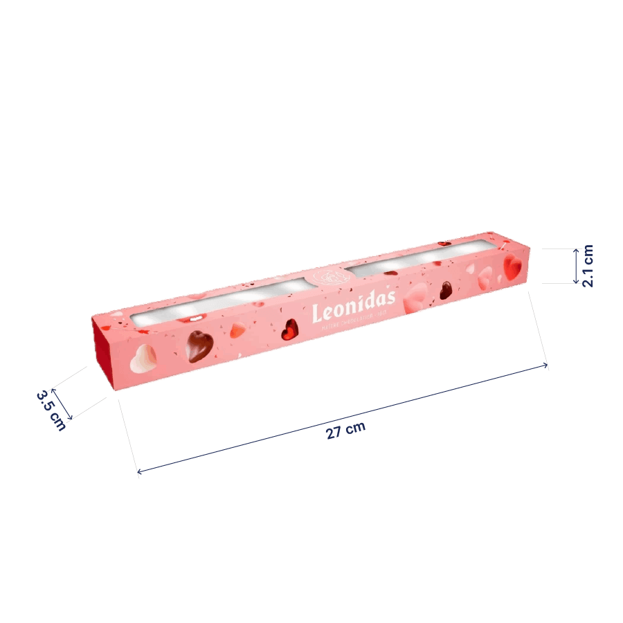 Rigleta Coeur Rose este un cadou dulce, cu mesaj, perfect pentru momentele în care vrei să transmiți afecțiune într-un mod simplu și elegant. În interior găsești 10 praline Leonidas în formă de inimioară, din ciocolată belgiană, alese special pentru sezonul romantic (Valentine’s Day / Mărțișor).