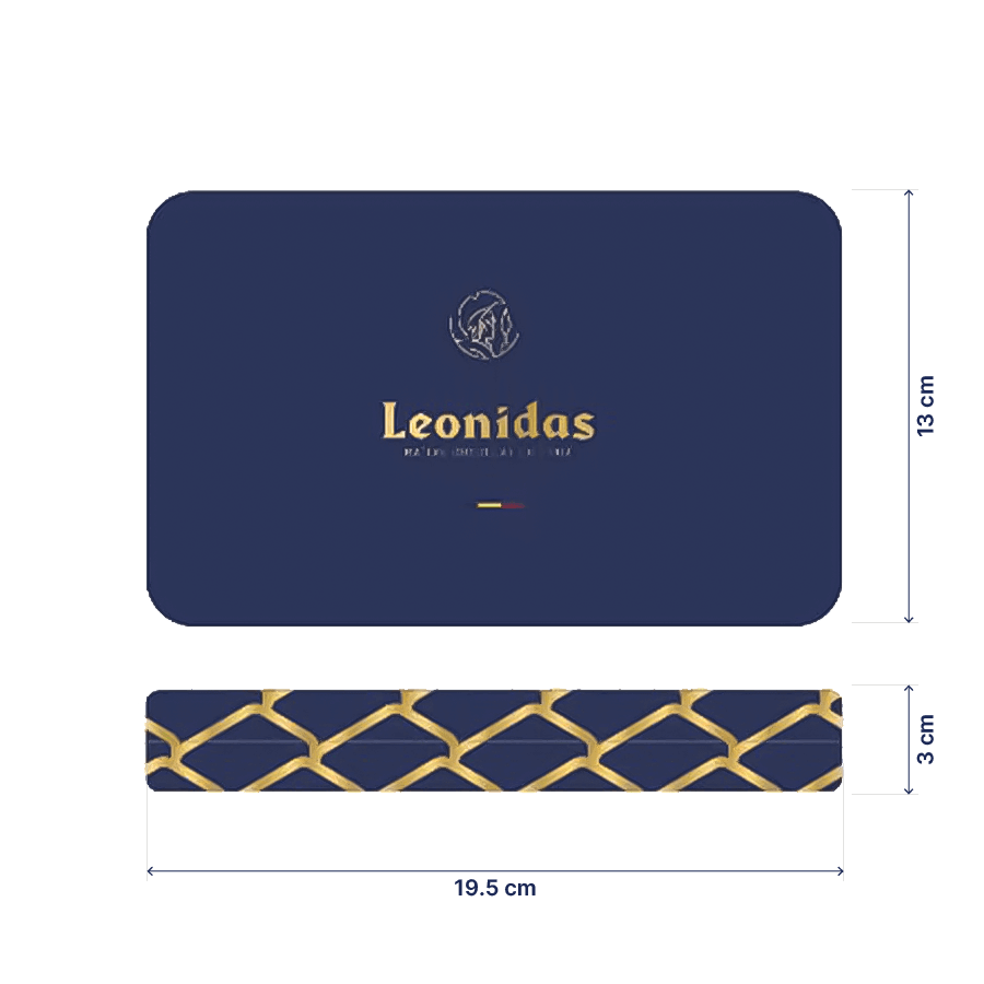 Designul cutiei impresioneaza prin culoarea albastra rafinata si detaliile aurii elegante. Este mai mult decat o simpla cutie – este o declaratie de stil si calitate. Fiecare cutie este insotita de o punga cadou Leonidas, fiind pregatita sa devina un dar memorabil pentru orice ocazie.