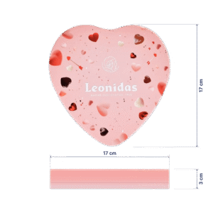 Tin Coeur Rose Leonidas conține 12 praline în formă de inimioară, din ciocolată belgiană, din gama specială a sezonului Valentine’s Day / Mărțișor.